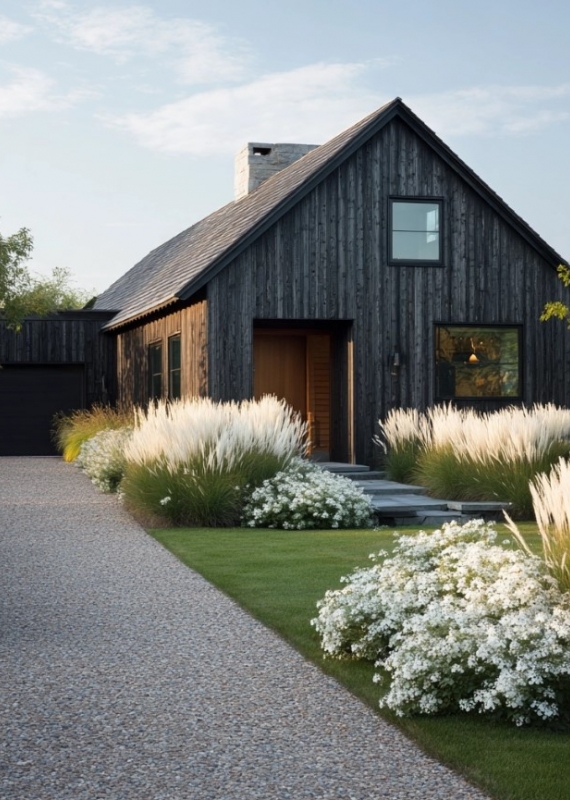 ✔️ Idejas kā iekārtot ieejas zonu, dzīvžoga stādījumus ar baltiem ziediem ziedošiem krūmiem un ziemcietēm.